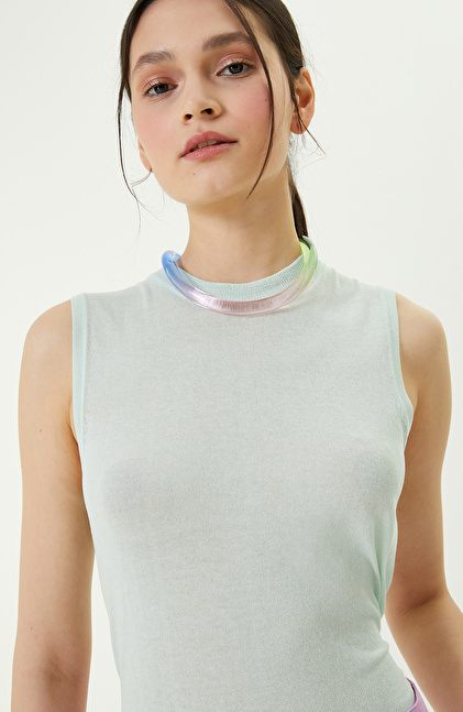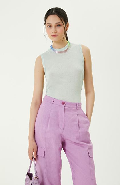 NetWork'ün zamansız ve özgün stilini yansıtan Mint Nane Kolsuz Triko Kazak, stil sahibi kadınların favori parçalarından biridir. Yumuşak triko kumaştan yapılan kolsuz kazak, yaz kombinleri için idealdir. Kolsuz tasarımı sayesinde triko hırka ve keten ceketlerle mükemmel uyum sağlar. Bisiklet yakası; casual, klasik, spor ve modern gibi farklı tarzlara hitap eder. Soft rengi sayesinde tüm kadın gardıropları ile eşleştirildiği için çok yönlü kullanıma uygundur. Basic fit kalıbı ve triko kumaşın esnekliğini bir arada sunan kazak, rahat ve şık görünümünüzü destekler. Siz de triko kazağı; beyaz keten şort, beyaz keten ceketle giyebilir, turkuaz sandalet, pembe el çantası ve altın renkli takılarla kombinleyebilirsiniz.