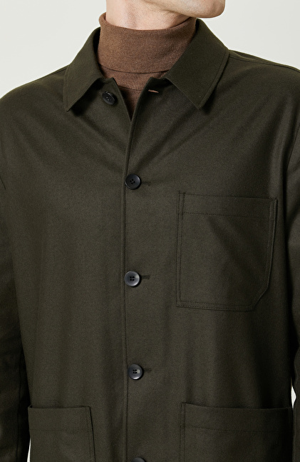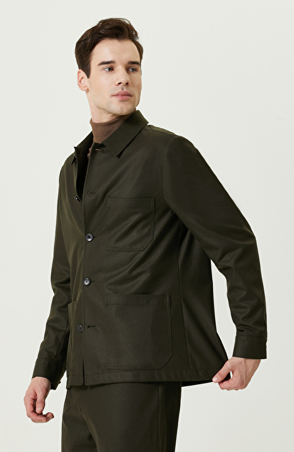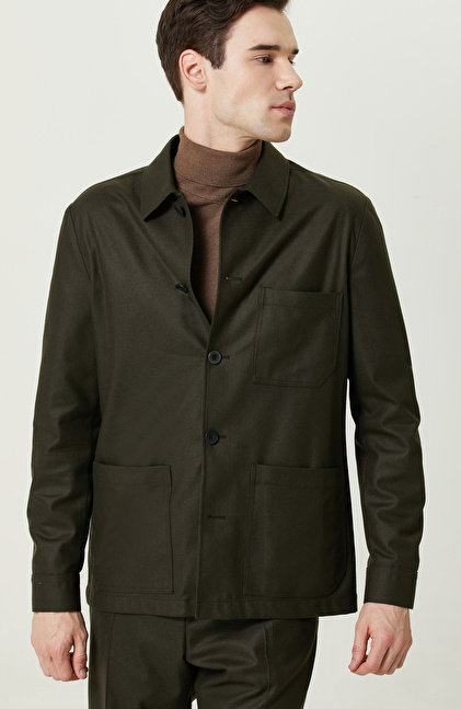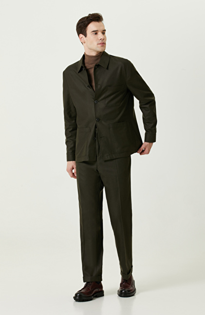 NetWork kış koleksiyonunun The Meghalithic serisinde öne çıkan Mono Yaka Haki Ceket, yüksek kaliteli kumaşı, cepli tasarımı ve zamansız stili ile şehirli erkeklerin favorisidir. Haki rengi sayesinde nötr kombinler yapmanızı sağlayan ceket, tüm erkek gardıroplarıyla uyumludur. Yünlü kumaşı kış kombinlerine ilham verirken önde yer alan geniş üç cep, işlevsel kullanım sunar. Mono yaka ile tasarlanan ceket, modern ve klasik stilin özelliklerini bir araya getirir, zamansız görünüm elde etmenize yardımcı olur. Haki ceketi; turuncu triko kazak, siyah kadife pantolon, siyah deri kısa bot ve kahverengi deri aksesuarlarla birlikte kullanabilir, zamanın ötesinde şık ve lüks görünümler yaratabilirsiniz.