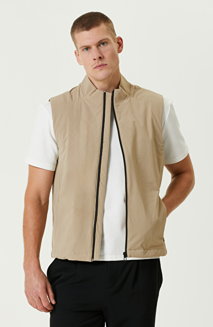 N-Tech Bej Dik Yaka Casual Yelek