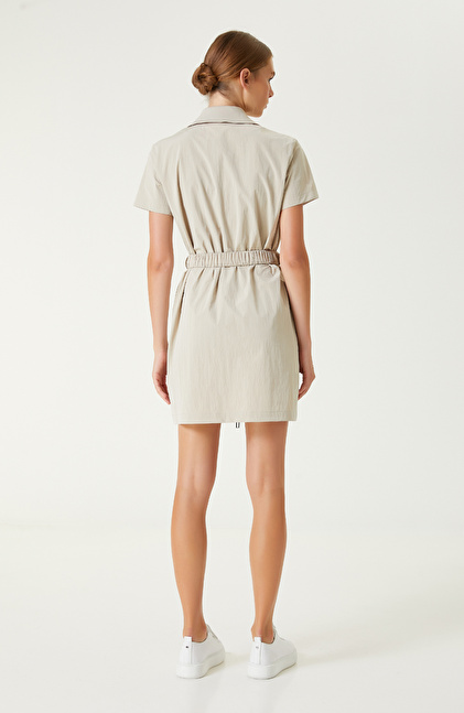 Regular Fit; Gömlek Yaka; Ön Beden Fermuarlı; Kısa Kol; Mini Boy Elbise; Bel Kemer Detaylı; 2 Cepli