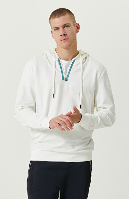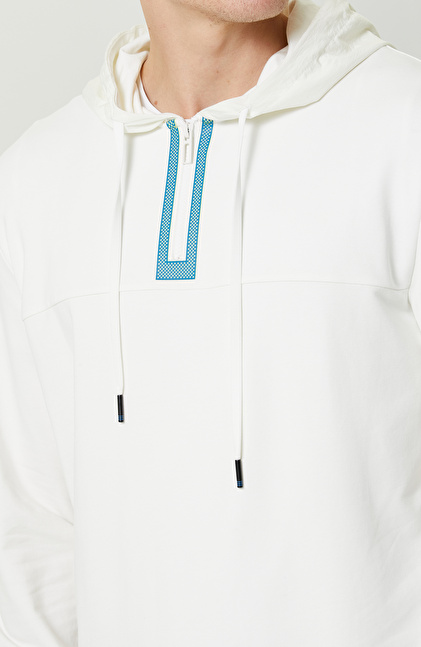 N-Tech Ekru Kapüşon Yaka Sweatshirt
