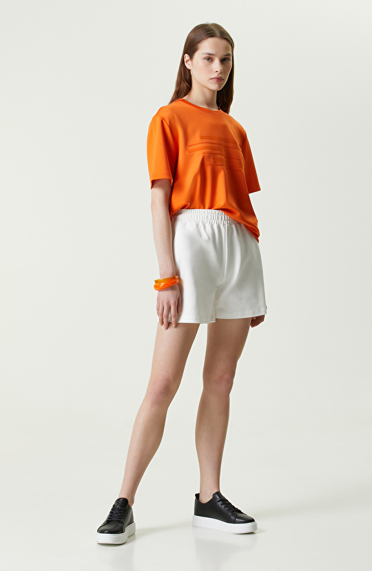 Klasik tasarımlara modern bir estetik kazandıran NetWork, Ekru Penye Şort ile hem rahat hem de şık bir görünüm sunar. Nefes alabilen pamuk ve rahat elastan karışımından normal bel olarak şekillendirilmiş cepli tasarım, kadınların temel yaz sezonu gardırobu için zamansız ve etkileyici bir tercihtir. N-Tech serisinden beli lastikli ve duble paça şort, basic fit kesimi sayesinde sıcak günlerde kusursuz bir uyum ve ferahlık sağlar. Siz de baskılı ekru şortu; turuncu bisiklet yaka t-shirt, siyah deri sneaker ve turuncu pleksi bilekliklerle kombinleyerek cesur ve iddialı bir stil oluşturabilirsiniz.