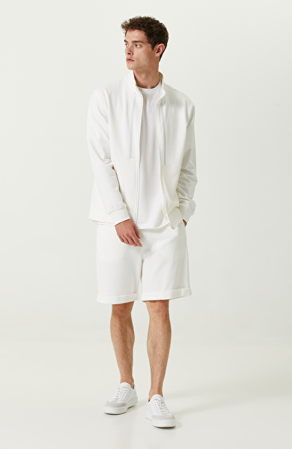 N-Tech Fermuar Detaylı Ekru Sweatshirt