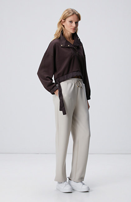 N-Tech Kahverengi Çıtçıt Detaylı Sweatshirt
