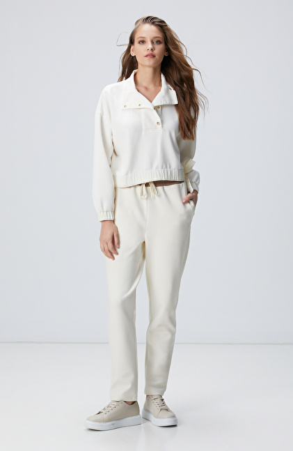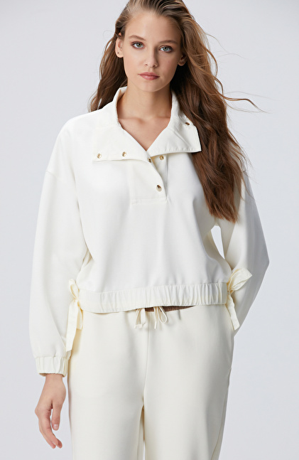 N-Tech Kırık Beyaz Çıtçıt Detaylı Sweatshirt