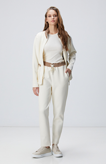 N-Tech Kırık Beyaz Dokuma Garnili Örme Eşofman