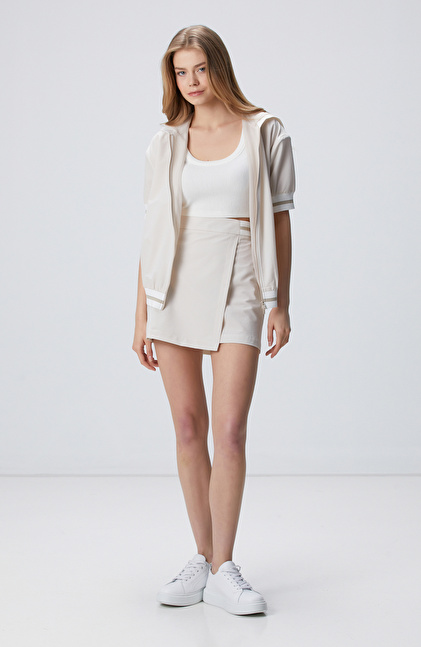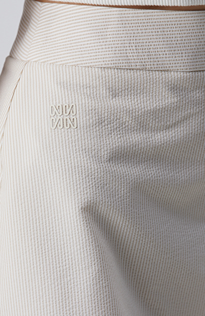 N-Tech Kırık Beyaz Gofreli Bej Mini Etek