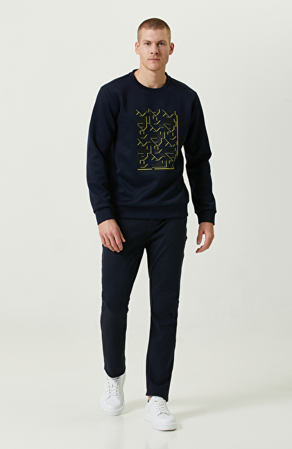 N-Tech Lacivert Bisiklet Yaka Baskılı Sweatshirt