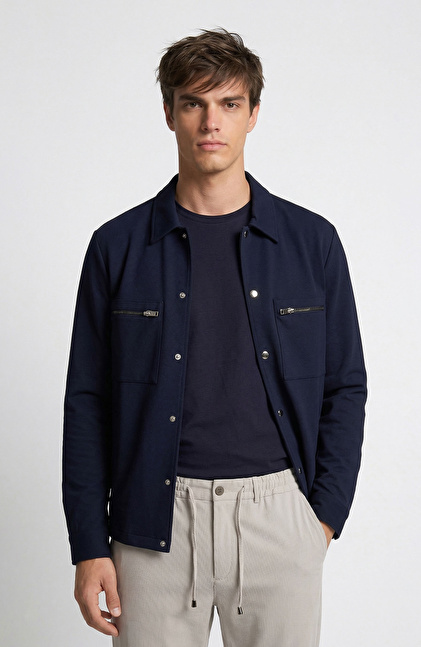 N-Tech Lacivert Çift Cepli Çıtçıtlı Dış Gömlek
