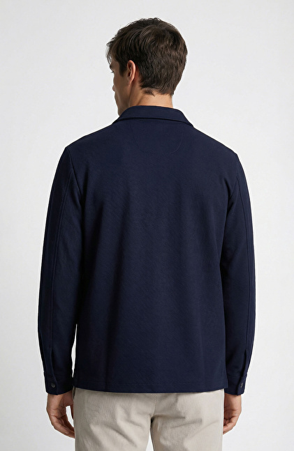 Slim Fit; Gömlek Yaka; Uzun Kol; Örme Dış Gömlek; N-Tech; Diyagonal Desenli; Çift Cepli