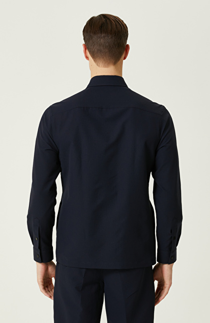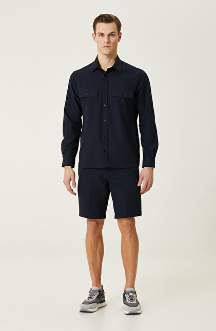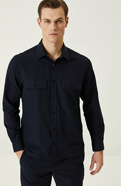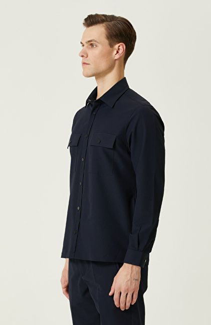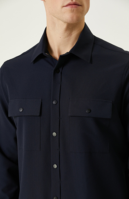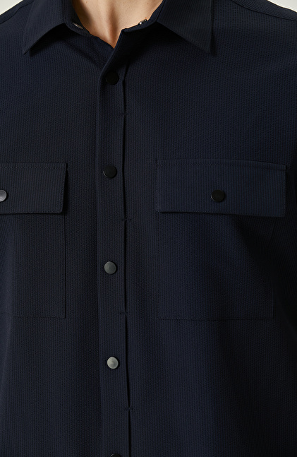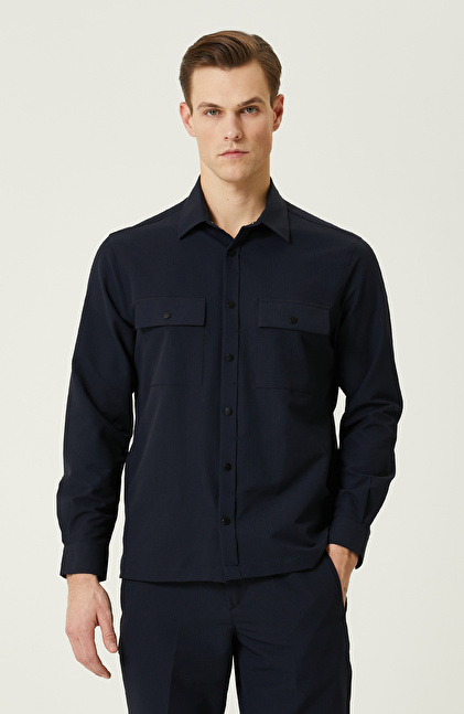 N-Tech Lacivert Gofreli Gömlek