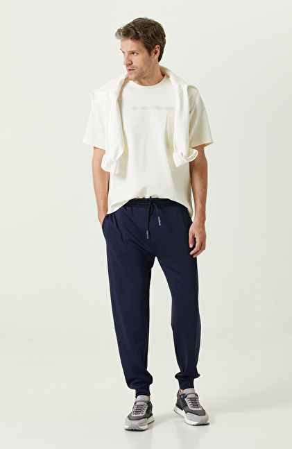 NetWork yaz koleksiyonu için hazırlanan Lacivert Ribanalı Slim Fit Eşofman, metropolde yaşayan erkeklerin vazgeçilmez spor kıyafetlerinden biridir. Ribanalı paça detayı sayesinde bileği sarar ve cesur giyinmeye özen gösteren erkeklere ilham verir. Bağcıklı bel tasarımı ile kolay giyilir ve en önemlisi beli ölçüsü vücut şekline göre rahatlıkla ayarlanabilir. Slim fit eşofman altı, vücudu saran yapısı sayesinde fit kombinler yapmanızı sağlar. Lacivert eşofmanın nötr rengi yenilikçi ve zamansız kombinler için idealdir. Çok yönlü gardıroplar için ideal eşofman kişisel eşyalarınız için iki yan ve bir arka cebe sahiptir. Ribanalı eşofmanı beyaz t-shirt, mavi kot ceket ve beyaz sneaker ayakkabı ile kombinleyebilirsiniz.