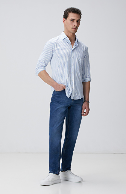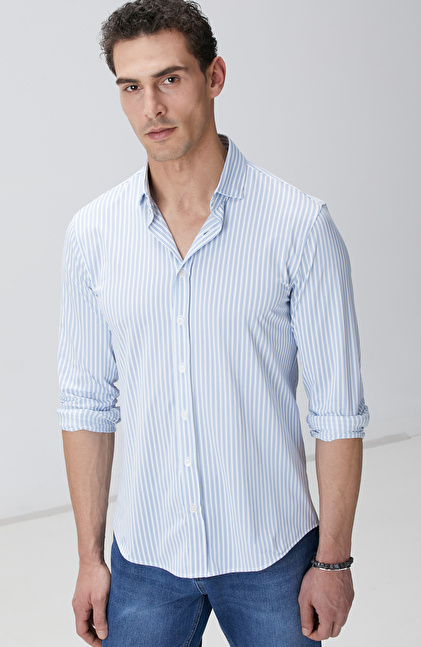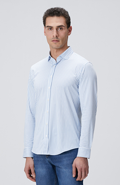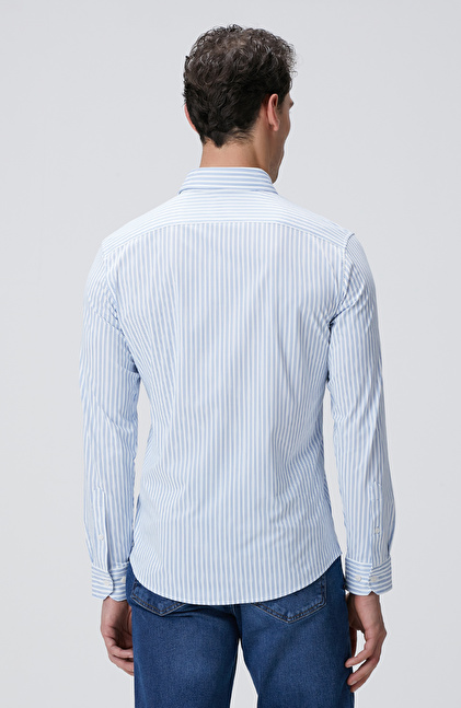 Slim Fit; Düğmeli Yaka; Çizgili Gömlek; N-Tech