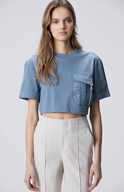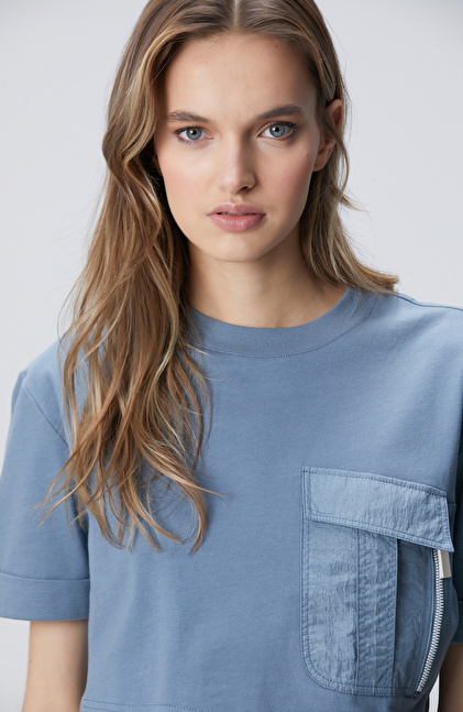 N-Tech Mavi Garni Detaylı T-shirt