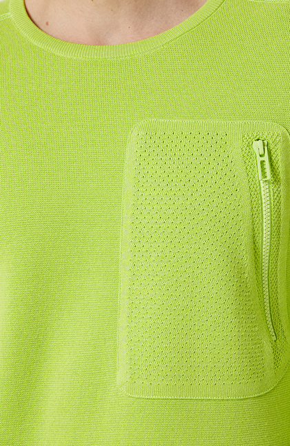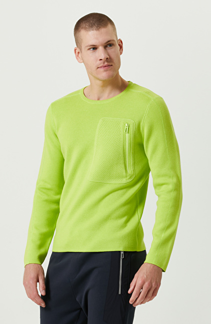 N-Tech Neon Yeşil Cep Detaylı Triko Kazak