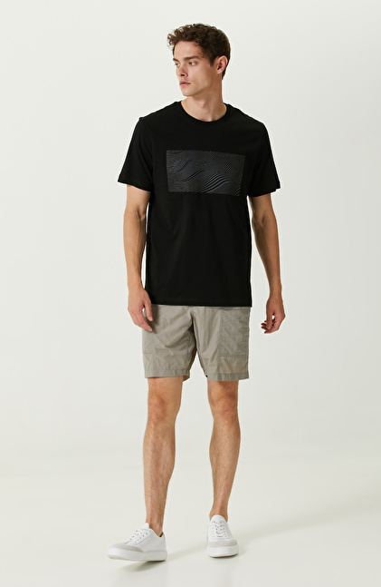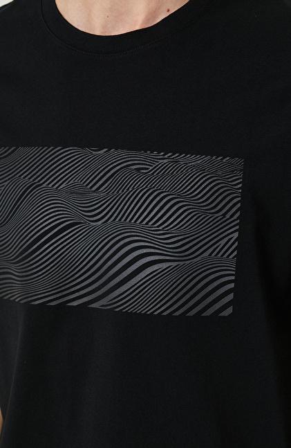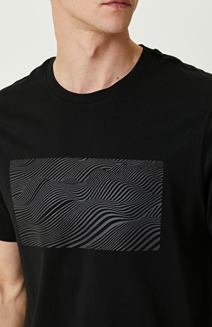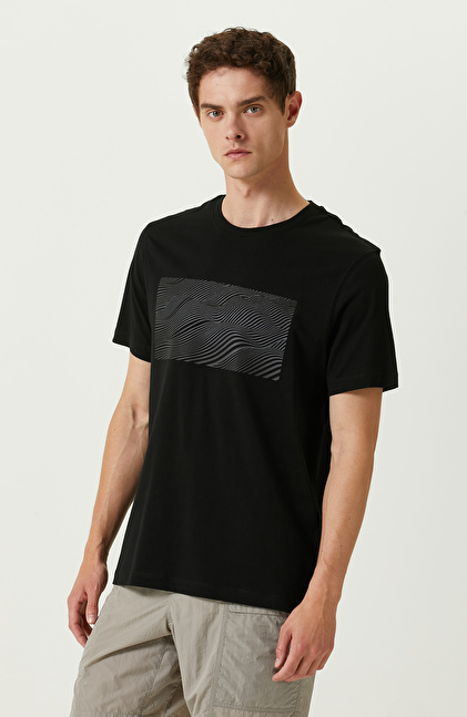 N-Tech Siyah Baskılı Pamuklu T-shirt