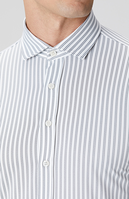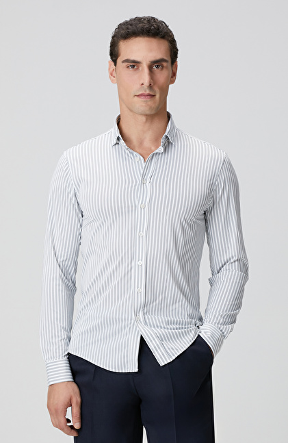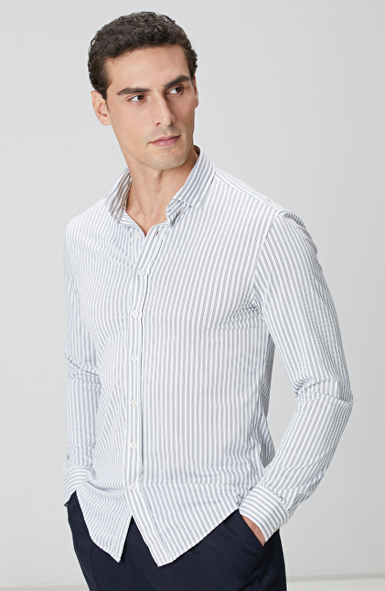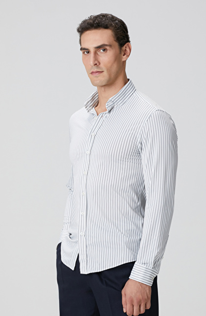 Slim Fit; Düğmeli Yaka; Uzun Kol; Cepsiz; N-Tech Çizgili Gömlek