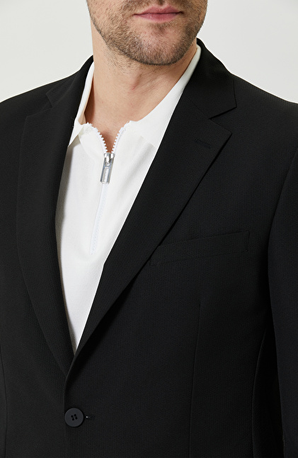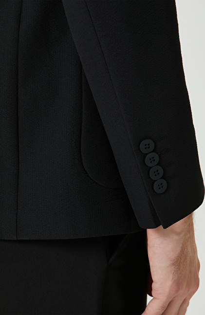 Comfort Fit;Mono Yaka;Düğme Kapatmalı;Düz Renk Ceket;Gofreli;Yırtmaçlı;Peto Cep Detaylı