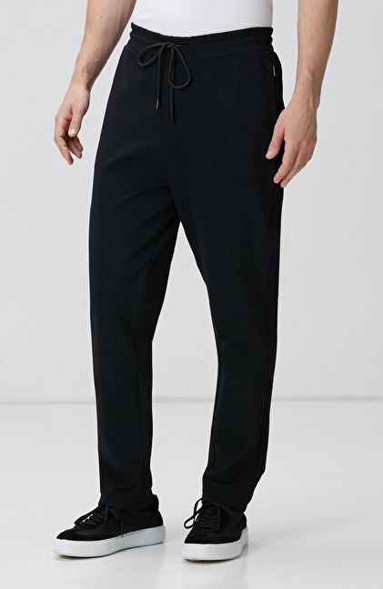 Slim Fit; Bağcıklı Orta Bel; Düz Paça; Örme Eşofman Altı; Diyagonal Desenli; N-Tech