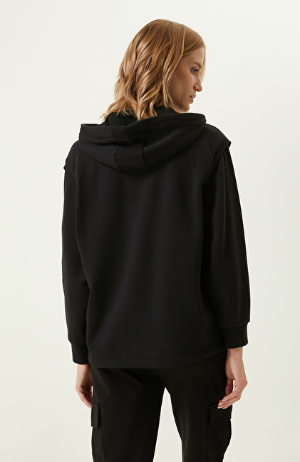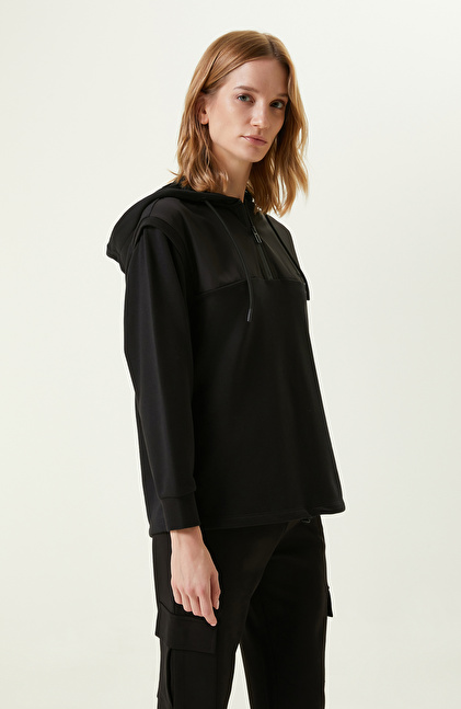N-Tech Siyah Pamuklu Kolda Fermuar Detaylı Sweatshirt