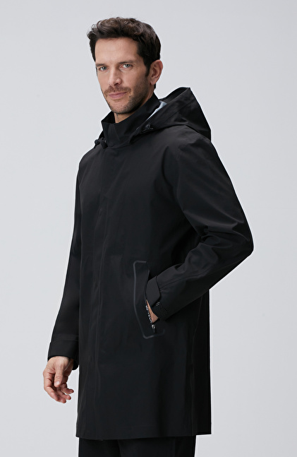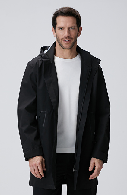 Comfort Fit; Kapüşon Yaka; Fermuar Kapatmalı Pardösü; Uzun Kol; Yan Cepli
