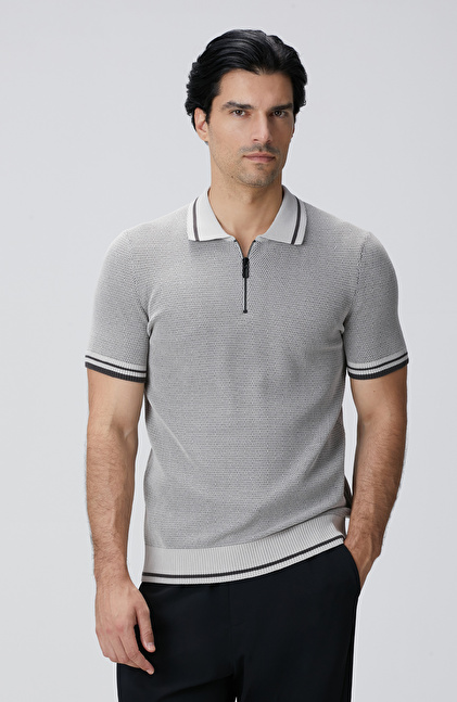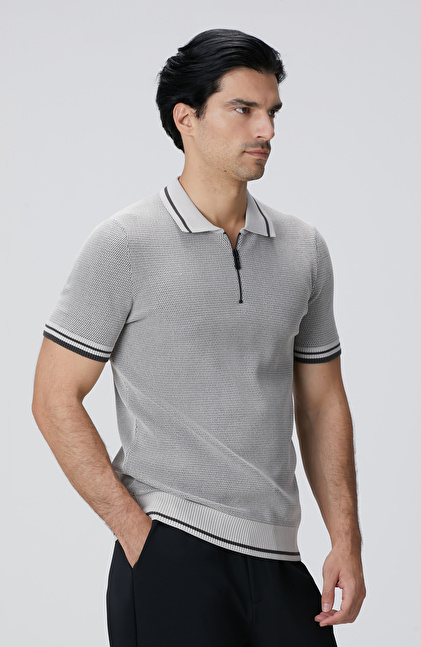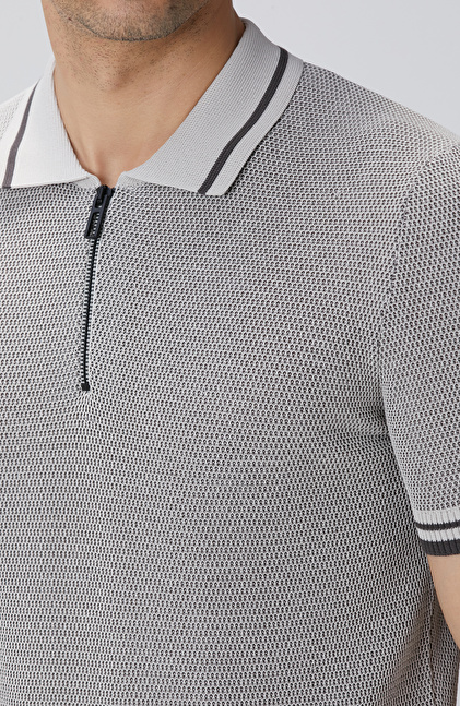 Slim Fit; Polo Yaka; Fermuarlı; Triko Kazak; N-Tech; Kısa Kol; Petek Desenli;