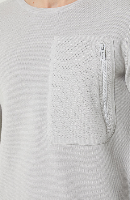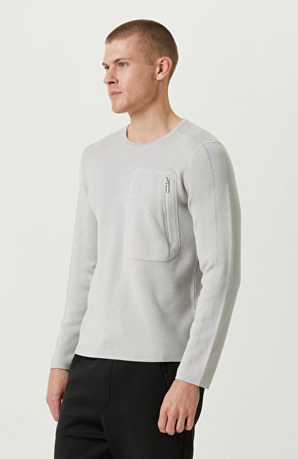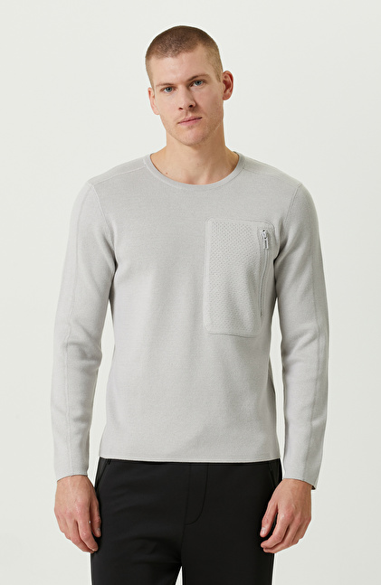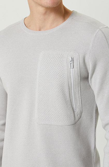 N-Tech Taş Rengi Cep Detaylı Triko Kazak