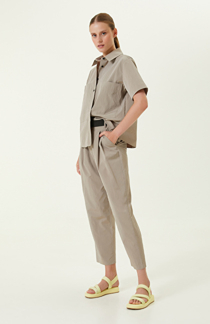 N-Tech Taş Rengi Kemerli Pantolon, zamansız şıklığıyla tarz sahibi kadınların hem günlük hemiş yaşamına hitap eder. NetWork Casual koleksiyonunun göze çarpan parçası, yaz sezonunun vazgeçilmez tasarımları arasında yer alır. Normal bel ve düz paça detayları ile rahat bir görünüm sağlar. Kemer ve pili detayları ile şık ve kusursuz bir tarz yakalayan model, üstün kaliteli kumaşı ve geniş fit kalıbı sayesinde sıcak günlerde serin ve konforlu hissetmenizi sağlar. Rengi ve dokusu ile casual kombinlerin önemli tamalayıcısı olan pantolonu taş rengi kısa kollu gömlek, siyah topuklu sandalet ve gold rengi takılarla kombinleyerek kusursuz bir görünüm yakalayabilirsiniz.