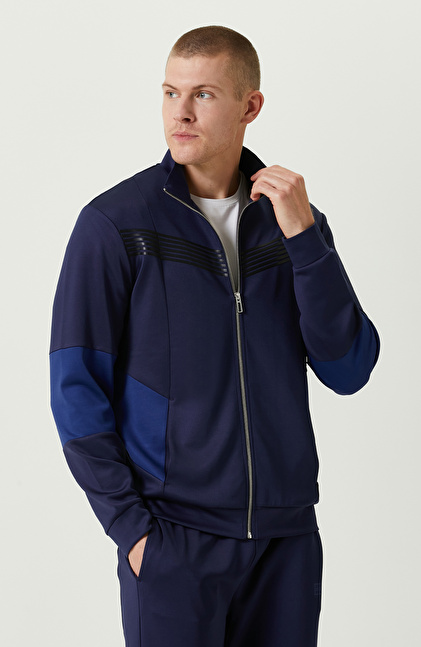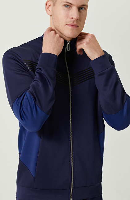 N-Tech Yan Cepli Lacivert Dik Yaka Sweatshirt