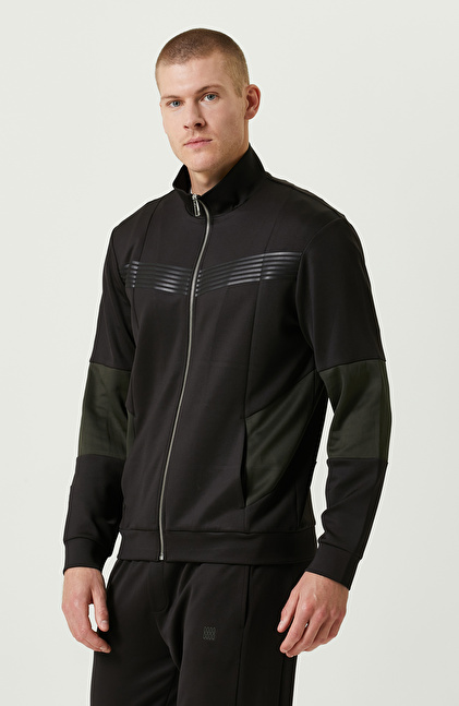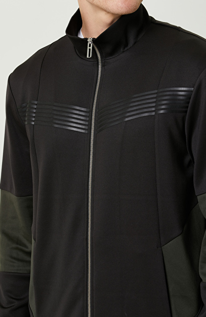N-Tech Yan Cepli Siyah Dik Yaka Sweatshirt