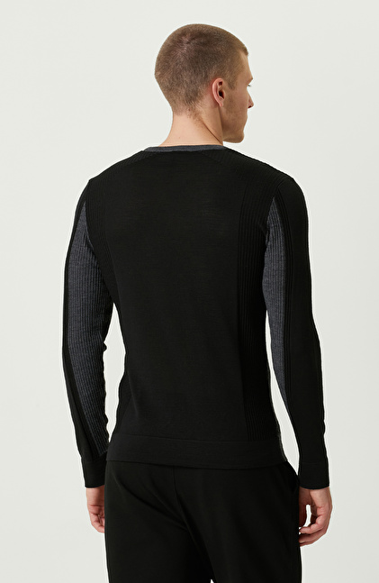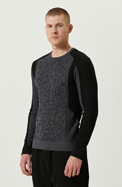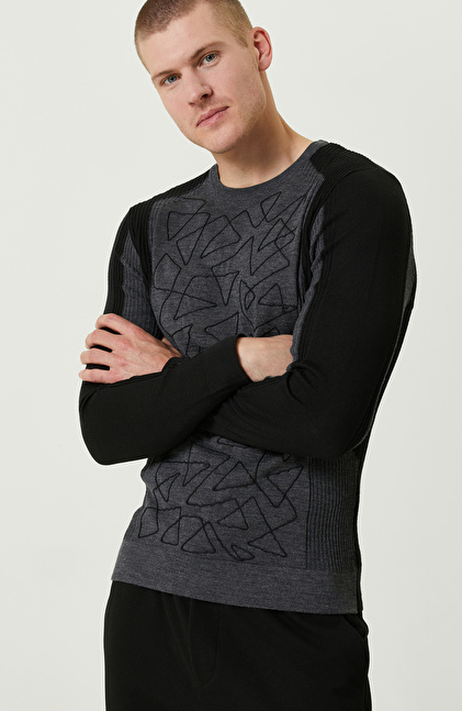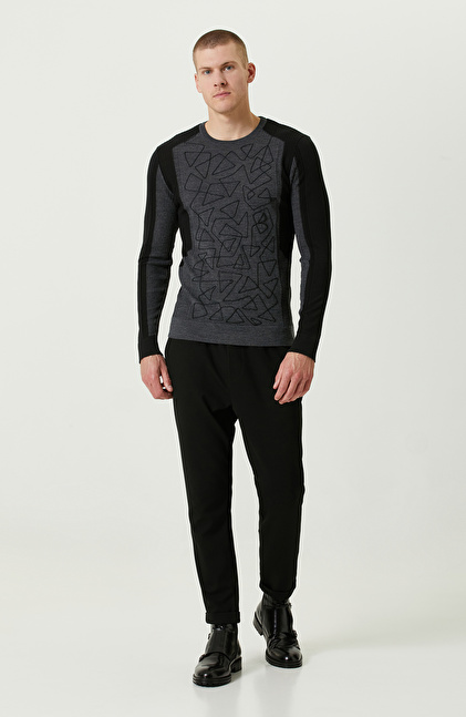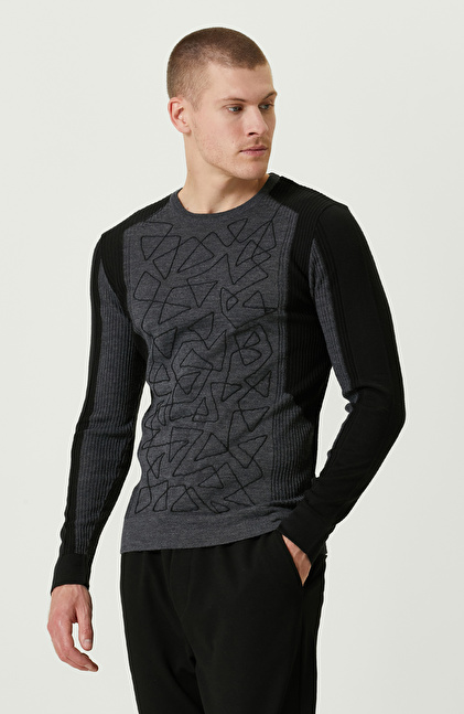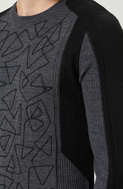 Nakışlı Siyah Triko Kazak