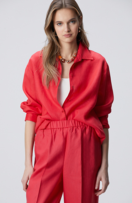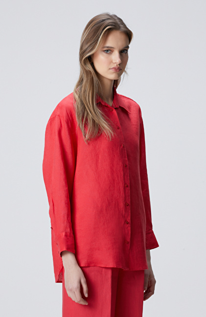 Nar Çiçeği Keten Gömlek