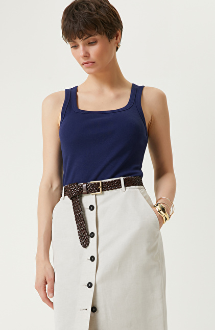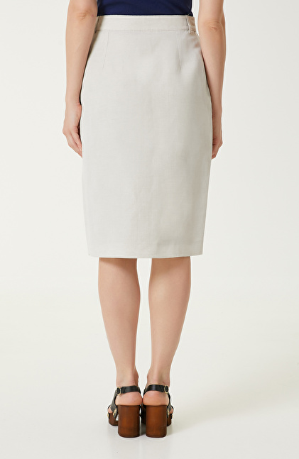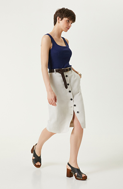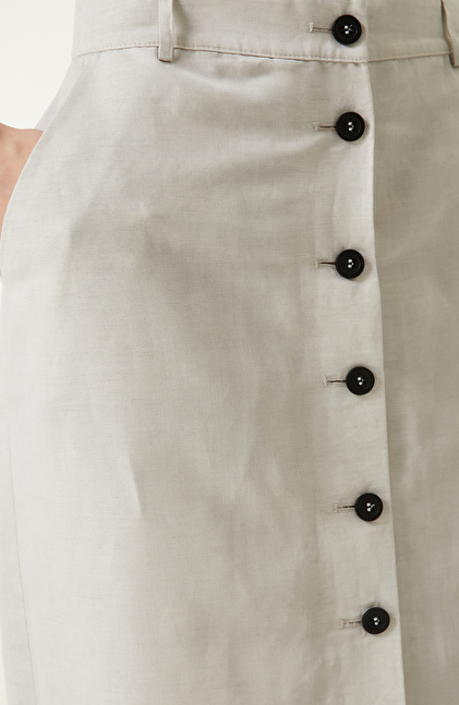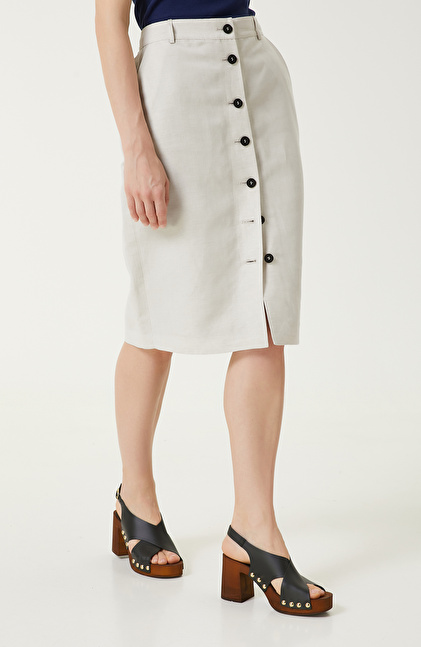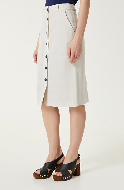 Regular Fit; Düğme Kapatmalı; 2 Cepli; Midi Etek