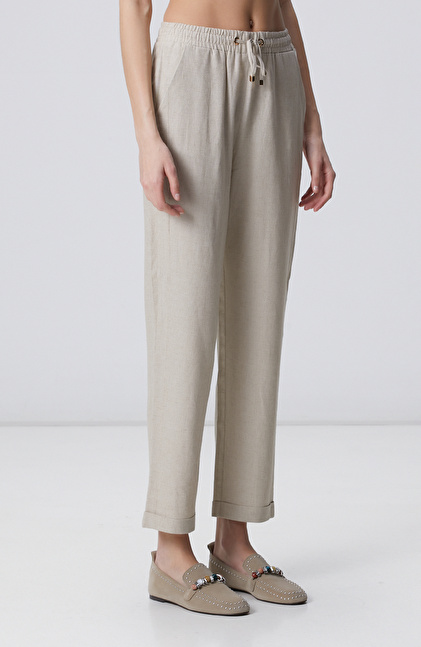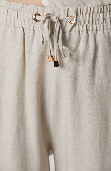 Naturel Nervür Detaylı Keten Mix Pantolon