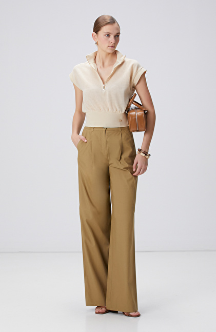 Basic Fit; Dik Yaka; File Görünümlü; Fermuarlı Sweatshirt