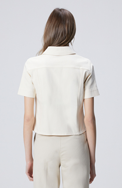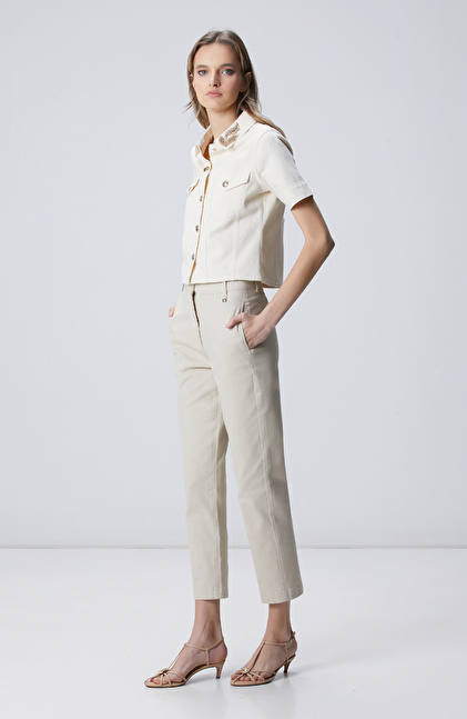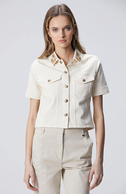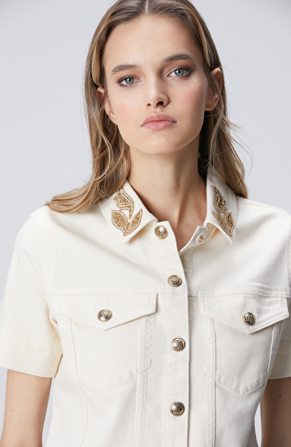 Naturel Yaka Taş Detaylı Denim Mont