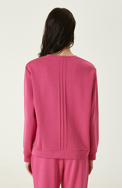 Neon Pembe Bisiklet Yaka Sweatshirt