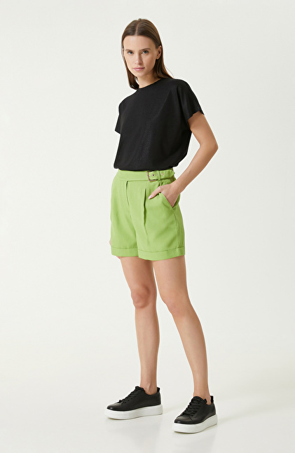Neon Yeşil Pileli Pantolon