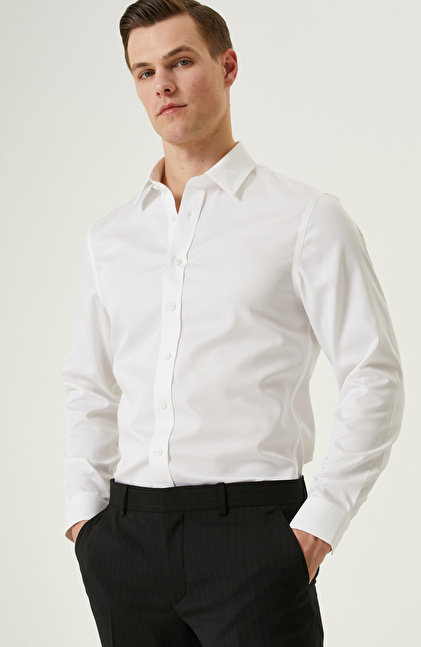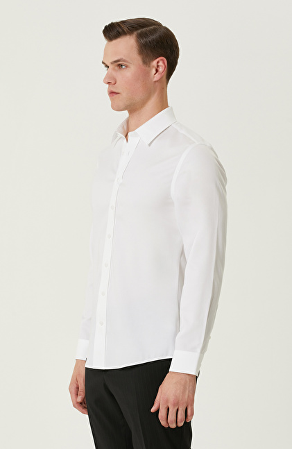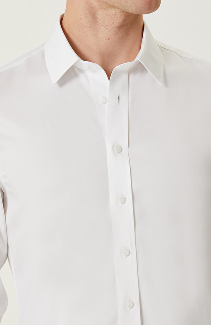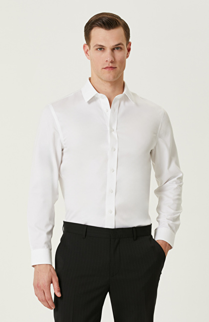NETWORK BUSINESS Non-Iron Beyaz Saten Gömlek