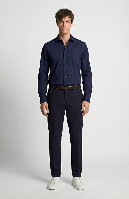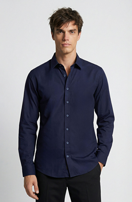 Non-Iron Lacivert Saten Gömlek