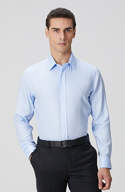 Non-Iron Mavi Balıksırtı Desenli Gömlek