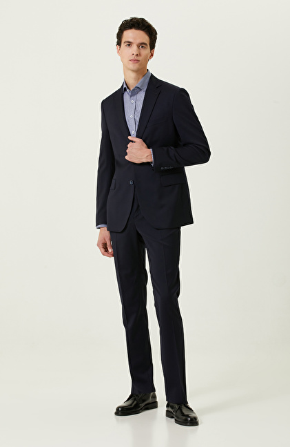 Dokuma Kumaş;Cepsiz;Yarım İtalyan Yaka;Uzun Kol;Kazayağı DesenSlim Fit