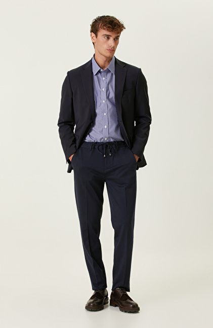 Uzun kollu; Balenli klasik yaka; Slim fit; Dokuma; Cepsiz