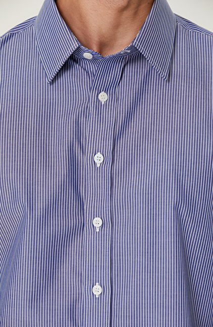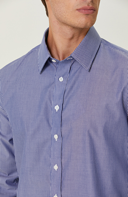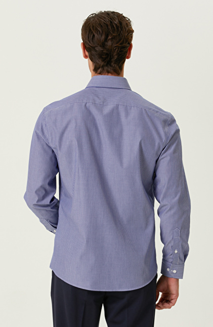 Non-Iron Pamuklu Mavi Beyaz Çizgili Gömlek