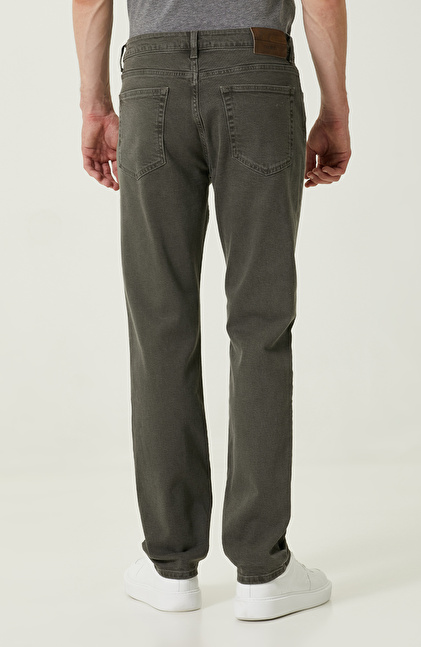 Aktif ve dinamik tasarımı ile Normal Bel Haki Denim Pantolon, şehirli stile sahip erkeklerin sonbahar kombinlerinde kendine yer bulur. NetWork Casual koleksiyonunda yer alan bu parça, günlük kombinler için oldukça uygundur. Yüksek kaliteye sahip kumaşı ile üzerinizde kusursuz bir duruş sergilerken kullanım açısından da sürdürülebilirlik sağlar. 5 cepli olarak tasarlanmıştır ve bu ceplerden biri küçüktür ve çakmaklara özeldir. Zamansız moda anlayışı ile lüks tasarımı bir araya getirerek gün içinde kombinlerinize iddialı bir dokunuş yapar. Bu parçayla haki rengi ile gri tişört ve beyaz sneaker kombinlendiğinde modern bir stil yakalamanızı sağlar.