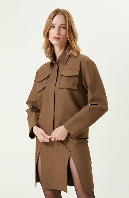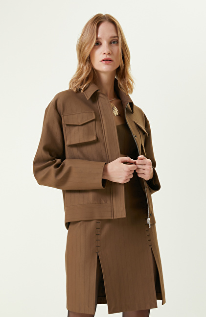 Sıcak rengi ve sade detaylara sahip üstün kaliteli kumaşı ile dikkatleri üzerine çeken Olive Çizgi Desenli Ceket, stil sahibi kadınların tercih ettiği parçalar arasında yer alır. NetWork’ün akıllı ve yenilikçi tasarımlarının bulunduğu Smart Casual koleksiyonuna aittir. Her döneme uyum sağlayan yüksek performanslı yapısı ile kış sezonunun zamansız ürünlerindendir. Regular fit formu, kusursuz bir konfor sağlarken, ürünün şıklığını da artırır. Siz de ulaşılabilir lüksü ve iddialı tasarımı bir arada sunan bu ceketi; dikiş detaylı bol paça siyah pantolon, siyah askılı triko atlet, siyah deri ayakkabı ve siyah çanta ile kombinleyebilirsiniz.