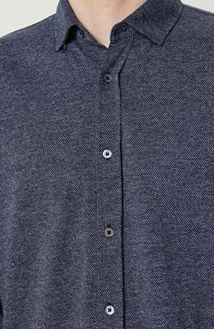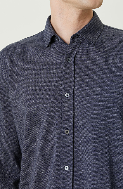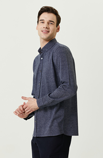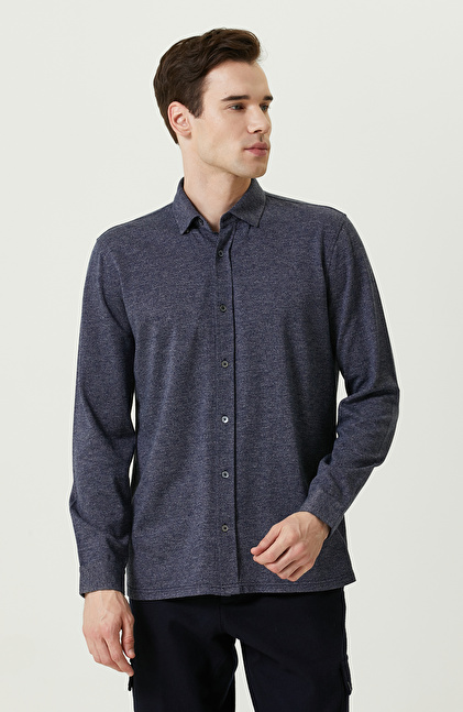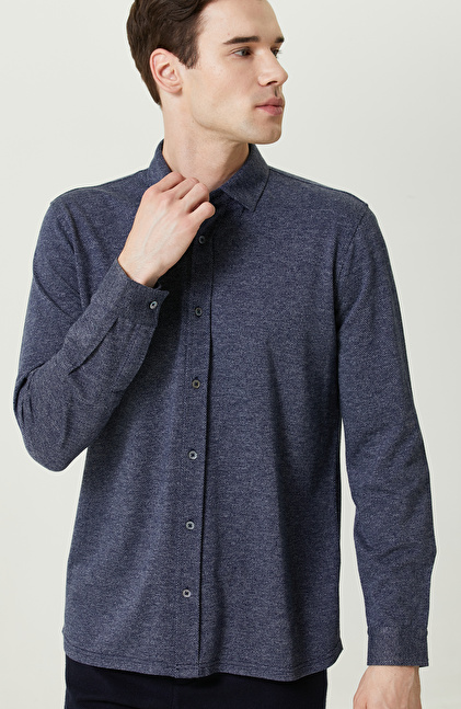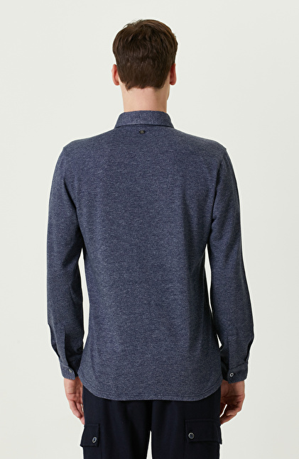Örme Klasik Yaka İndigo Gömlek