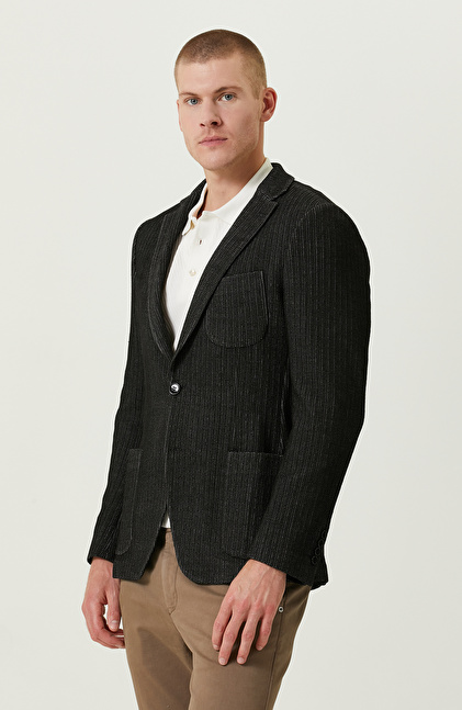 NetWork Smart Casual çizgisini taşıyan Örme Mono Yaka Siyah Desenli Ceket, ofis şıklığı sunan zamansız tasarıma sahiptir. Hem lüks hem de konforlu yapıyı bir araya getiren bu ceket, kışın casual şıklık elde etmenizi sağlar. Ciddi ve iddialı bir stil oluşturarak modern ve şehirli görünümünüzü öne çıkarabilirsiniz. Ekstra rahat edebileceğiniz kalıbı ve kesimi de gün boyu elegan görünümünüzü korur. Şıklığını yansıtmayı seven erkeklerin tercihidir. Aplike cep detayları, hem tasarıma özgün bir dokunuş yapar hem de işlevsel kullanım imkanı verir. Vizon renk kumaş pantolon, beyaz polo yaka tişört ve siyah sneaker ayakkabıyla kombinleyebilirsiniz.