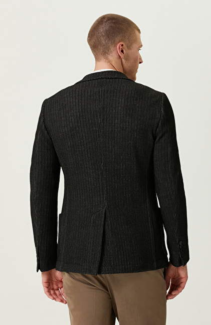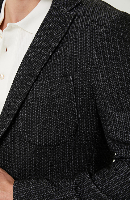 Örme Mono Yaka Siyah Desenli Ceket