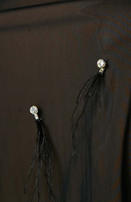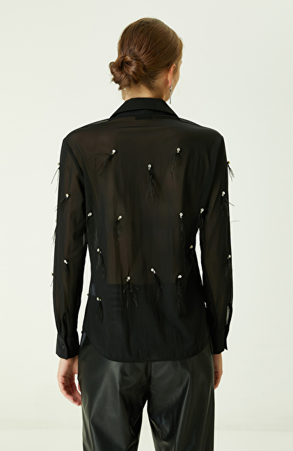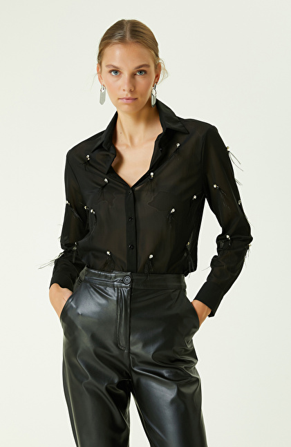 Otriş ve Taş Detaylı Siyah Gömlek